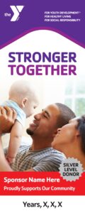 Donating $1000 or more gives you a Silver Level Sponsorship and your choice of a 2’x5′ vertical banner hung in the location of your choice: Gym, Pool, or Wellness Center.
